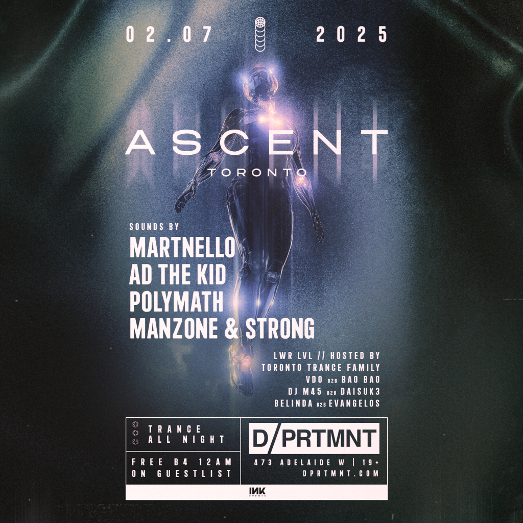 DPRTMNT FRIDAYS MAIN ROOM: MARTNELLO – MANZONE & STRONG – AD THE KID – POLYMATH WRLVL: VDO B2B BAO BAO DJ – M45 B2B DAISUK3 – BELINDA B2B EVANGELOS FRIDAY, FEBRUARY 07, 2025 DOORS: 10:30PM EVERYONE FREE ON GUESTLIST BEFORE MIDNIGHT This is a LEGAL AGE 19+ event. Valid photo ID required.